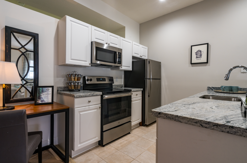 - Modern kitchens with breakfast bar and granite countertops