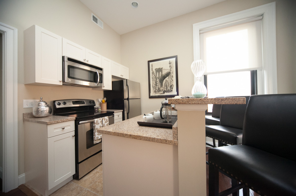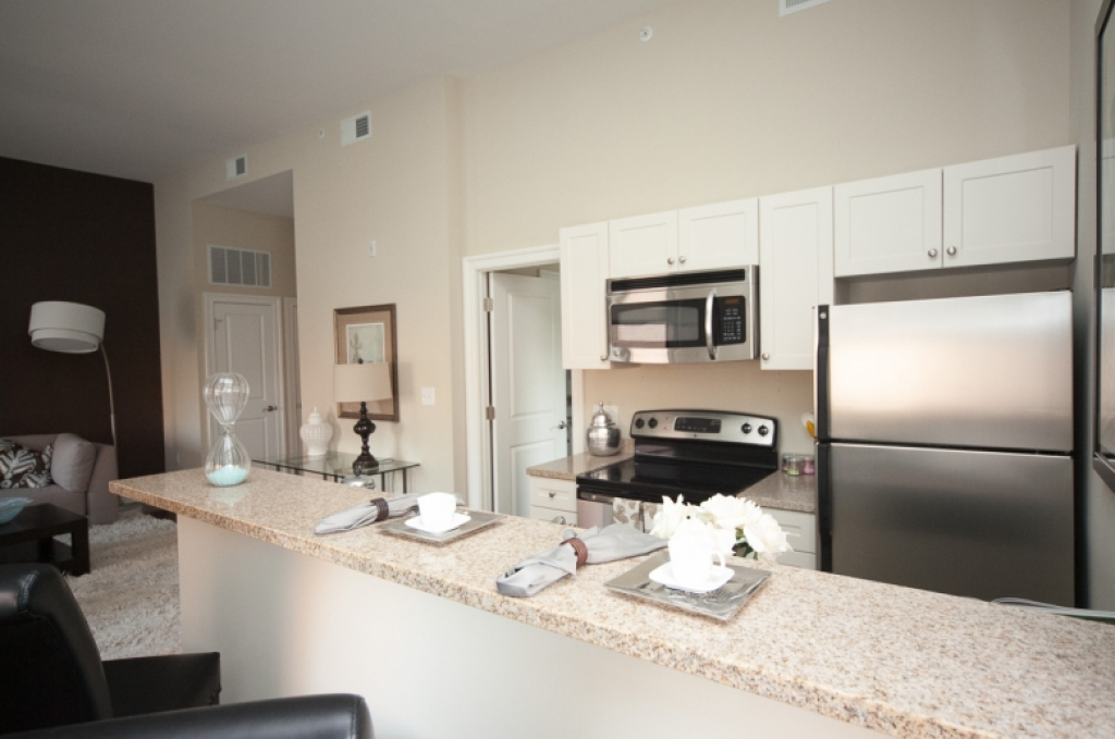 - Modern kitchens with granite countertops, stainless steel appliances, and breakfast bar