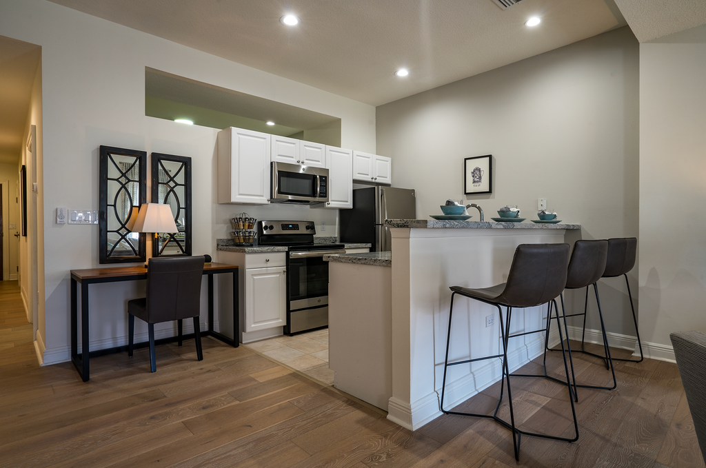 - Modern kitchens with breakfast bar and granite countertops