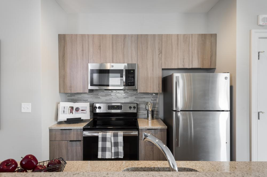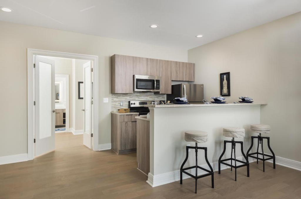 • Modern kitchens with granite countertops, stainless steel appliances, under-mounted sinks, and breakfast bar