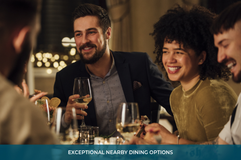 - Local dining options include Vernick Fish, Jean Georges, Walnut Street Cafe, Moustaki, Friday Saturday Sunday, Dizengoff, and Shake Shack